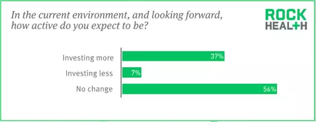 对于回答像“纵观当前的数字医疗环境,未来在该领域投资者活跃度会如何变化?”这样的问题时,37%的VC表示愿意在数字医疗领域加大投入,56%会保持现状,仅7%的VC表示会减少投资金额。