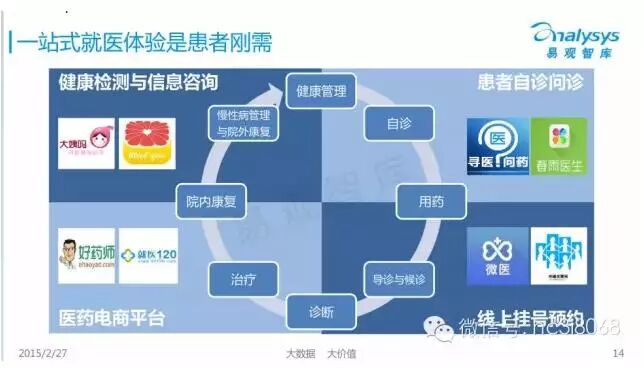 而从整个移动医疗的生态来讲,未来趋势一定是一站式的就医体验,移动医疗需要做的是完成患者就医的闭环,这对创业者的要求会非常高,不是说没有机会,而是BAT的机会可能会更大,因为BAT只需完成投资和整合。