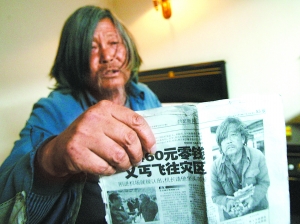 他,一名南京街头的普通乞丐;他,曾在地震期间捐款三次感动无数国人;他,曾坐着头等舱作为贵宾出席新加坡华裔商人在震区希望小学的落成典礼,他就是被人亲切称为“义丐”的67岁老乞丐徐超。2008年5月17日,南京江宁街头,乞丐徐超掏出5元钱放进募捐箱;当天下午,徐超特意去银行将讨来的零钱换成整钱,将100元塞进募捐箱;5月19日,徐超又送来了339.01元的捐款。因汶川地震期间三次捐款,徐超被人亲切地称为“义丐”,然而徐超的生活并没因此而改变,“成名”后的他又回到街头乞讨。